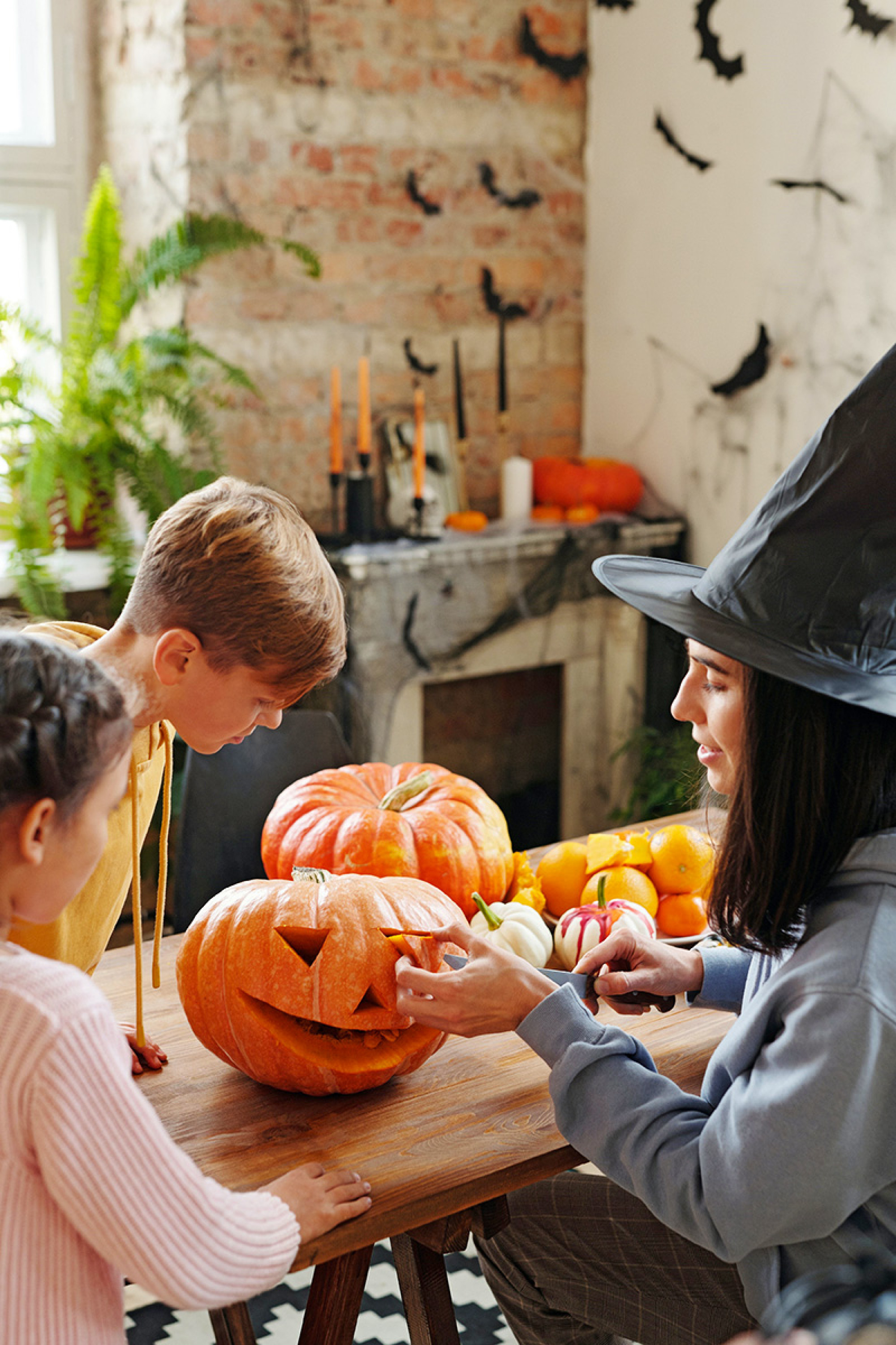 Am Sonntag, 31. Oktober, ist Halloween. Dafür können schaurige Kürbisse mit Kindern geschnitzt werden. Benötigt werden für die Aktion ein Kürbis, ein scharfes Messer, ein Löffel und ein Stift zum Vorzeichnen des Gesichtes. Zuerst wird die Form des Deckels vorgezeichnet und dann mit einem scharfen Messer vorsichtig ausgeschnitten. Dann muss der Kürbis ausgehöhlt werden. Das geht mit den Händen und einem Löffel. Anschließend wird das gewünschte Gesicht auf den Kürbis gezeichnet und dann mit einem Messer ausgeschnitten. Und fertig.