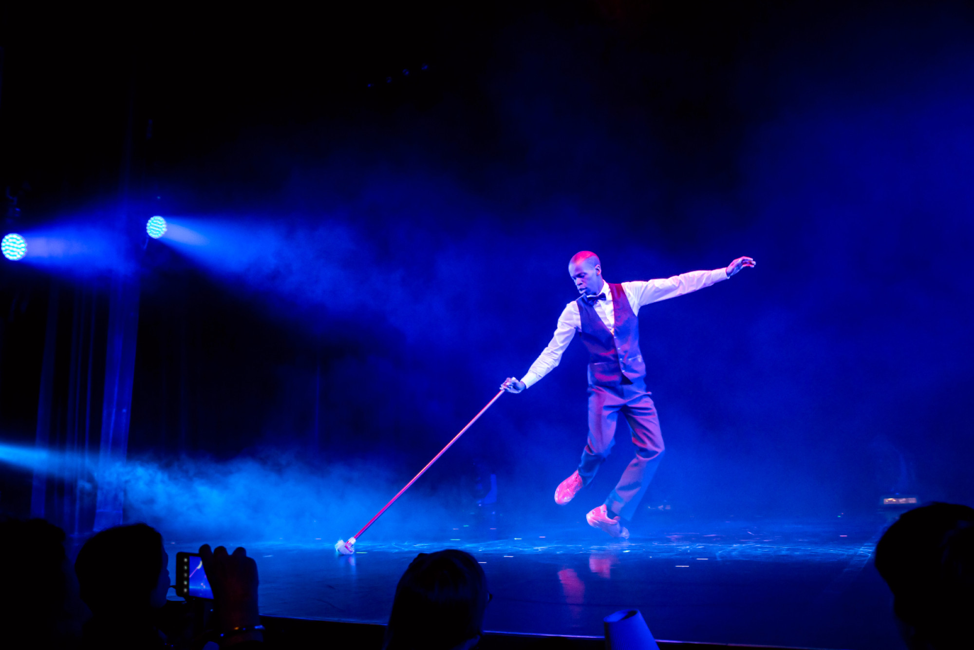 Simone wusste schon früh, dass er glücklich sein will – und das ist er, wenn sich die Welt um ihn herum schnell dreht. Mit seinem Cyr und beeindruckenden Breakdance-Einlagen begeistert er das Publikum. Der italienische Künstler hat sich sein Können autodidaktisch angeeignet und zeigt in "Funky Town", welche hohen Ansprüche er an sich selbst stellt.